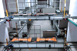 采用在同一层上用搬运台车或起重机平面移动车辆,或使载车板平面横...